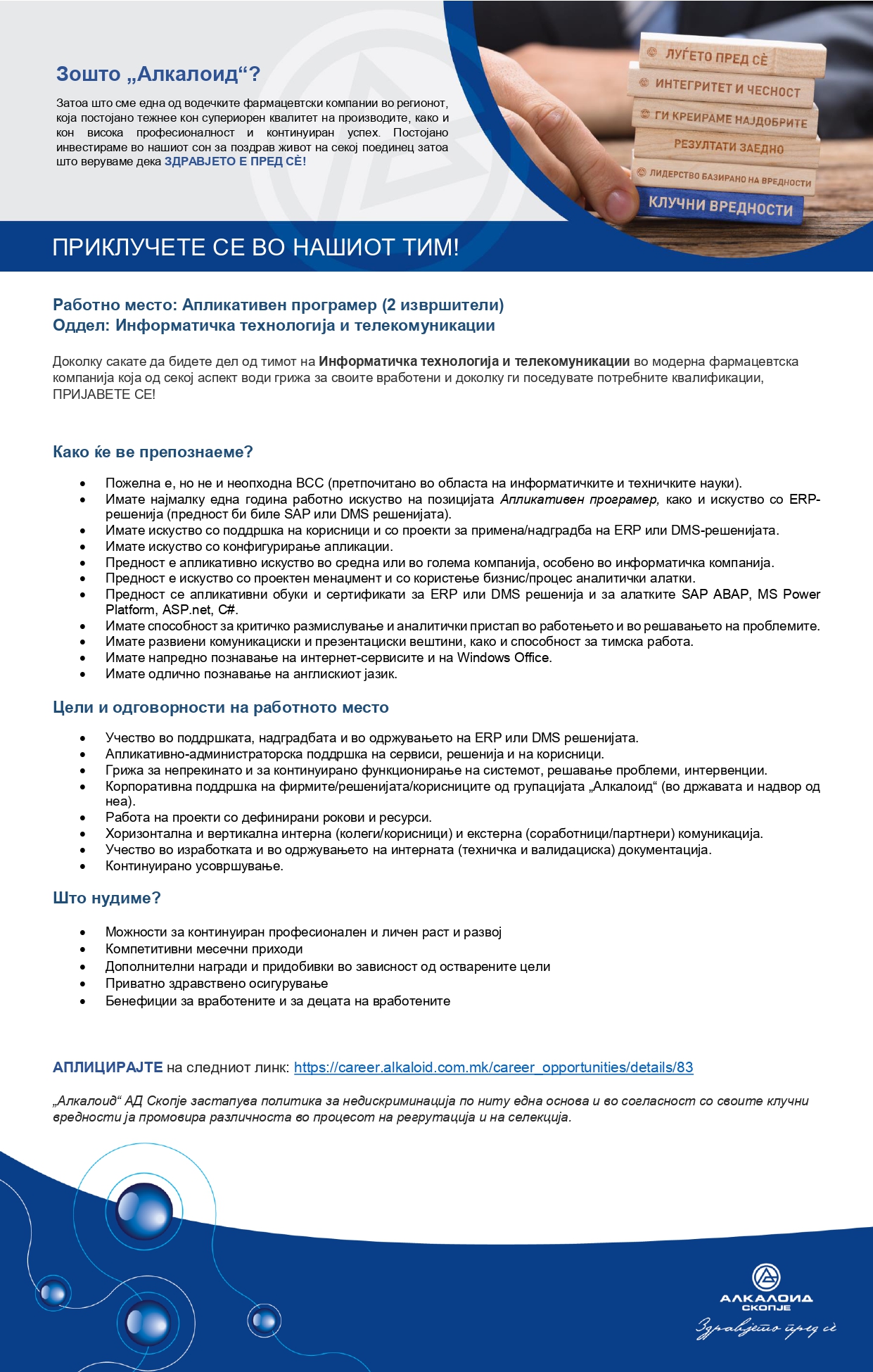 „Алкалоид“ AД Скопје е компанија која повеќе од осум и пол децении работи на производство на лекови, преработка на билни суровини и на производство на козметички и на хемиски производи.