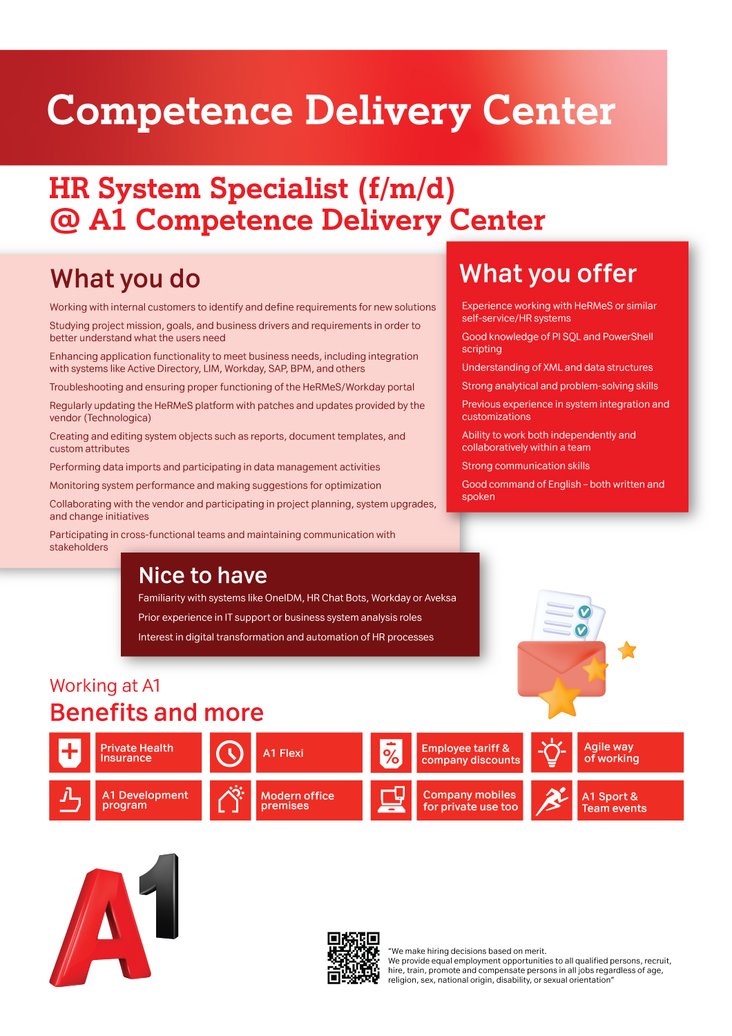 Во А1 Македонија сакаме да бидете свои и автентични на работното место! Затоа сме сериозни во врска со придобивките.